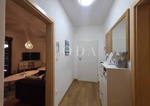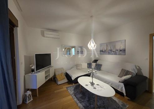 Die Wohnung ist mit neuen und modernen Möbeln ausgestattet, verfügt über hochwertige PVC-Fenster mit Rollläden, und auf dem Balkon befindet sich eine Markise, die den ganzen Tag über ein angenehmes Ambiente bietet.