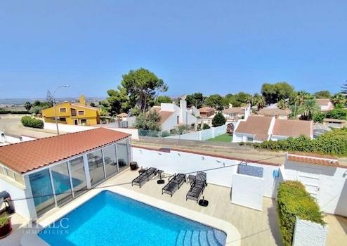 Es bietet sich die Möglichkeit, zwei separate Wohnungen zu errichten. Insgesamt verfügt es über 4 Schlafzimmer, 3 Badezimmer, 2 Küchen, mehrere Wohn- und Esszimmer sowie eine überdachte Terrasse und eine Dachterrasse mit herrlichem Blick auf das Meer und die Salzseen rund um Torrevieja. Ein praktischer Außenbereich mit Swimmingpool, Wintergarten und Außenbadezimmer ist vorhanden.