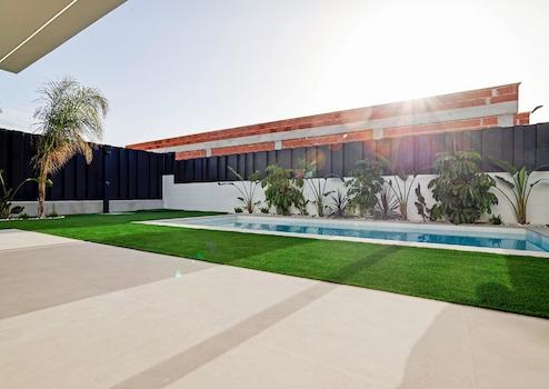NEUBAU-VILLEN IN MOLINA DE SEGURA ~~Neubau-Villa auf einer Ebene mit 3 Schlafzimmern, 2 Bädern, offener Küche mit geräumigem Wohnzimmer, Einbauschränken, Terrasse, privatem Garten mit dem Pool und Parkplatz.~~Die Villen befinden sich in einer privaten Urbanisation mit 24h/7 Sicherheit. ~Umgebung mit viel Natur und Bergen.~Einkaufszentren in 11 km Entfernung (IKEA, Geschäfte, Supermärkte, Restaurants...)~Supermarkt in 350 m Entfernung.~Golfplatz 7 km entfernt.~Wasserpark 12 km.~2 internationale Schulen weniger als 20 Autominuten entfernt.~Murcia Stadtzentrum 14 km.~Strände von Murcia 45 Min. und Orihuela Costa 50 Min. entfernt.~Flughafen Murcia 30 Minuten und Flughafen Alicante 45 Minuten entfernt.~Perfekte Lage, um das spanische Leben das ganze Jahr über zu genießen.~