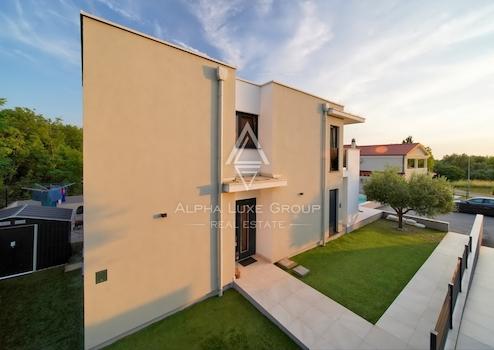 Im ruhigen istrischen Dorf Babići bei Umag steht ein modernes Haus mit Pool aus dem Jahr 2022 zum Verkauf. Das Anwesen bietet Meerblick, höchsten Wohnkomfort auf zwei Etagen und einen attraktiven Außenbereich zum Entspannen. Es eignet sich ideal für den Sommer, zur Vermietung oder als dauerhafter Wohnsitz.