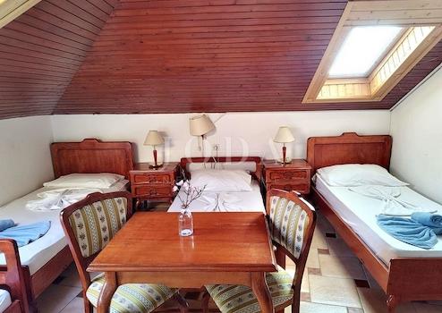 Die Pension verfügt über eine Rezeption, eine professionell ausgestattete Küche sowie ein Restaurant mit Platz für vierzig Gäste im Innenbereich und siebzig weitere auf zwei Terrassen. Im Erdgeschoss befindet sich ein Pool, der den Gästen zur Verfügung steht und dem Objekt zusätzlichen Wert und Attraktivität während der gesamten Tourismussaison verleiht.