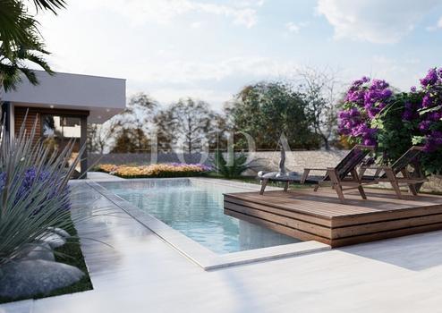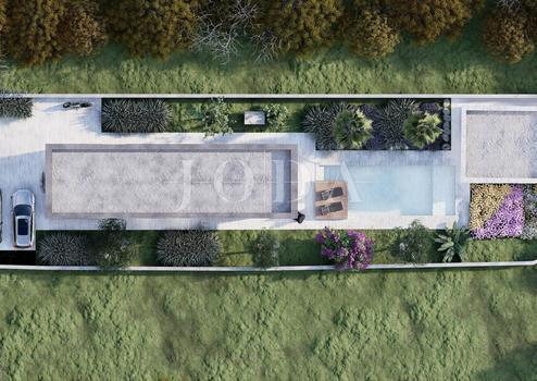 Auf einem 690 m² großen Grundstück entsteht ein Einfamilienhaus mit Nebengebäude und Swimmingpool. Die Bruttofläche beträgt 213 m², die Nettofläche 191 m². Im Erdgeschoss des Gebäudes befinden sich Eingangshalle, Schlafzimmer, Badezimmer, Abstellraum, Küche, Esszimmer, Wohnzimmer. Im ersten Stock befinden sich drei Schlafzimmer, zwei Badezimmer, ein Flur, ein Balkon und eine Terrasse. Ein 38 m² großer Swimmingpool und ein Nebengebäude – Wellness – sind geplant. Beim Bau wurden hochwertige Materialien und Geräte verwendet. Die Immobilie unterliegt der Mehrwertsteuer. Die Entfernung zum Meer beträgt 3500 Meter. Der Einzug ist für Ende 2026 geplant.