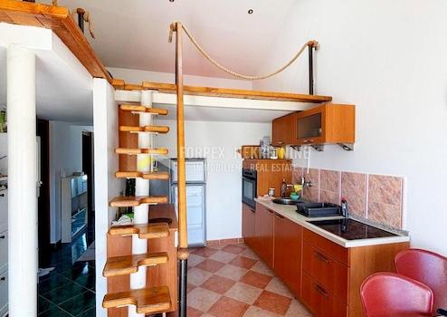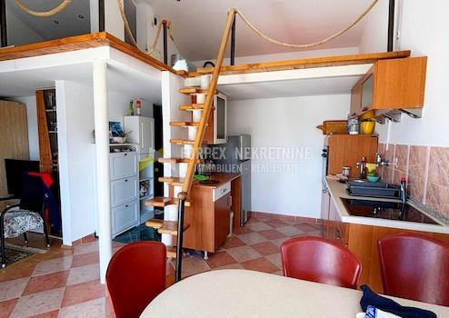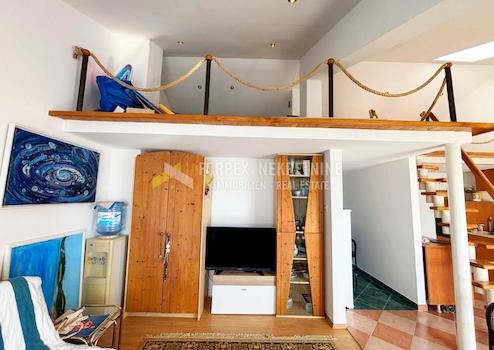 Eine charmante Wohnung in Novi Vinodolski mit wunderschönem Meerblick steht zum Verkauf. Obwohl sie nicht direkt am Meer liegt, bietet sie dank ihrer erhöhten Lage absolute Ruhe und einen Ausblick, den man am Meer kaum findet.