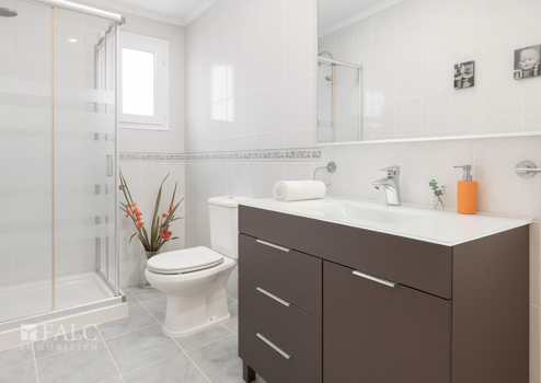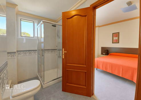 Hier befinden sich vier helle Doppelschlafzimmer, alle mit Einbauschränken und Zugang zur Terrasse – zwei davon mit eigenem Bad en Suite. Ergänzt wird die Etage durch ein weiteres, komfortables Badezimmer.
