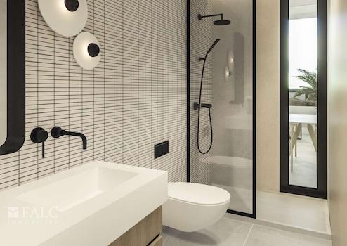 Diese exklusive Wohnbaueinheit überzeugt durch eine durchdachte Raumaufteilung und hochwertige Ausstattung, unterschiedlichen Stockwerken und Preisen. Auf 95,50 m² Wohnfläche verteilen sich zwei Schlafzimmer und zwei moderne Badezimmer. Ergänzt wird das Wohnkonzept durch großzügige Außenbereiche – eine 23,55 m² große Terrasse sowie ein 52 m² großes Solarium mit herrlichem Meerblick.