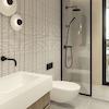 Die Penthäuser verfügen über ein 52 m² großes Solarium mit herrlichem Ausblick. Das Solarium ist über eine Wendeltreppe von der Hauptterrasse aus erreichbar. Die Penthäuser befinden sich im 9. Stock und umfassen zwei Schlafzimmer, zwei Badezimmer, ein sonniges Wohnzimmer mit offener Einbauküche, einen doppelten Abstellraum und einen Parkplatz. Außerdem gibt es Abstellmöglichkeiten für Fahrräder.