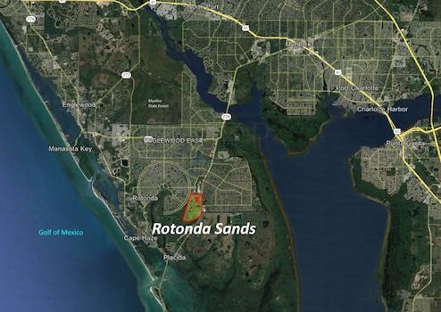 Stadtteil Rotonda Sands: Ein neues, vom County (aufgrund der hohen Nachfrage nach Bauland) "wiederentdecktes" (und dann sofort voll erschlossenes) Baugebiet, südöstlich des Rotonda Circle.