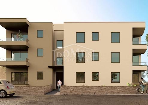 Tribunj – Neubau, ein Mehrfamilienhaus mit 9 Wohneinheiten. Das Gebäude bietet einen Panoramablick auf das Meer und besteht aus vier Etagen: Untergeschoss + Erdgeschoss + 1. Stock + 2. Stock. Das Gebäude hat ein modernes Design und wird mit hochwertigen Bodenbelägen, Innen- und Außenholzarbeiten, Klimaanlagen zum Heizen und Kühlen in jedem Raum sowie elektrischen Rollladenantrieben ausgestattet. Jede Wohneinheit verfügt über einen eigenen Parkplatz und einen Abstellraum im Untergeschoss. Das Gebäude liegt nur 700 m vom Strand Bristak und 950 m vom Zentrum sowie allen wichtigen Einrichtungen entfernt.