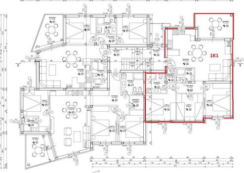 Der voraussichtliche Einzugstermin ist Ende Die Wohneinheit 1K1 befindet sich im ersten Stock des Gebäudes, ist nach Nordosten ausgerichtet und verfügt über eine Nutzfläche von 92,56 m². Im vorderen Teil der Wohnung befindet sich eine großzügige Küche mit Essbereich und Wohnzimmer, mit Zugang zu einer Terrasse von 11,24 m², die Meerblick bietet. Die Wohnung umfasst außerdem ein Badezimmer, einen Abstellraum und einen Flur, der zu drei Schlafzimmern führt, von denen eines über ein eigenes Badezimmer verfügt.