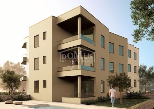 Tribunj – Neubau, ein Mehrfamilienhaus mit 9 Wohneinheiten. Das Gebäude bietet einen Panoramablick auf das Meer und besteht aus vier Etagen: Untergeschoss + Erdgeschoss + 1. Stock + 2. Stock. Das Gebäude hat ein modernes Design und wird mit hochwertigen Bodenbelägen, Innen- und Außenholzarbeiten, Klimaanlagen zum Heizen und Kühlen in jedem Raum sowie elektrischen Rollladenantrieben ausgestattet. Jede Wohneinheit verfügt über einen eigenen Parkplatz und einen Abstellraum im Untergeschoss. Das Gebäude liegt nur 700 m vom Strand Bristak und 950 m vom Zentrum sowie allen wichtigen Einrichtungen entfernt.