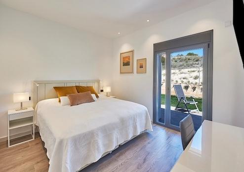 Baujahr 2021/2022, ca. 350 m2, 4 Schlafzimmer mit 4 Bädern en-suite, sep. Gäste-WC, alle Schlafzimmer mit Kingsize-Bette, Flachbildschirm-TV, Safe, beleuchtetem Einbauschrank, privater Terrasse sowie modernen Armaturen (Hans Grohe, Designer Philipp Starck) und zweitem TV im Badzimmer-Spiegel.