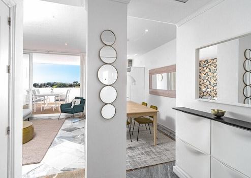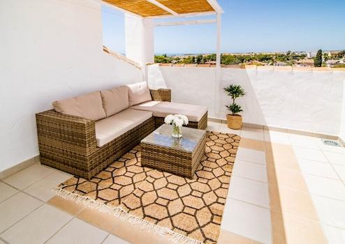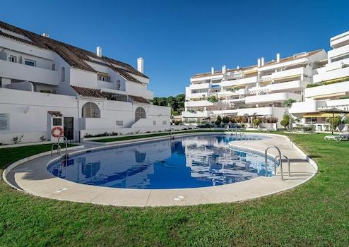 Erstklassige Lage: Diese Wohnung bietet eine unvergleichliche Nähe zu begehrten Annehmlichkeiten. Von renommierten Golfplätzen und Gastronomiebetrieben bis hin zu belebten Häfen, von charmanten Boutiquen bis zu sonnenverwöhnten Stränden, jede Annehmlichkeit ist mühelos erreichbar. Faszinierende Merkmale: Südliche Ausrichtung, tadelloser Zustand, Gemeinschaftspool, Klimakontrolle: Klimaanlage, Panoramablicke: Beeindruckende Ausblicke auf das Meer, die Berge und den Pool. Unverwechselbare Ausstattungen: Überdachte Terrasse, Einbauschränke, Solarium, WLAN, erlesener Marmorboden, Nähe zur örtlichen Kirche. Möbel und Einrichtungen: Mit akribischer Liebe zum Detail präsentiert, strahlt das Anwesen Opulenz aus mit einer voll ausgestatteten Küche und Zugang zum Gemeinschaftsgarten, was eine Atmosphäre der ruhigen Abgeschiedenheit innerhalb einer lebendigen Gemeinschaft fördert. Sicherheit und Parken: Die Sicherheitsstandards werden durch gesicherten Zugang und elektrische Jalousien erhöht. Parkmöglichkeiten sind durchdacht entlang der angrenzenden Straßen angeordnet. Diese Immobilie stellt eine außergewöhnliche Gelegenheit für diejenigen dar, die eine günstige Investition oder ein modernes Ferienhaus suchen.