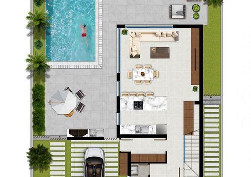 Auf dem ca. 310 m² großen Grundstück befindet sich ein wunderschöner Pool, der an warmen Sommertagen für eine erfrischende Abkühlung sorgt. Die zentrale Klimaanlage sorgt zu jeder Jahreszeit für ein angenehmes Raumklima und bietet somit optimalen Komfort. Das Highlight dieser Immobilie ist jedoch die direkte Strandnähe, die es ermöglicht, jederzeit das Meer zu genießen und lange Spaziergänge am Strand zu unternehmen.