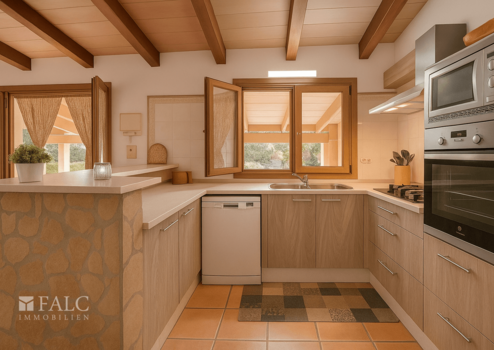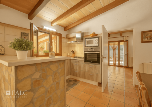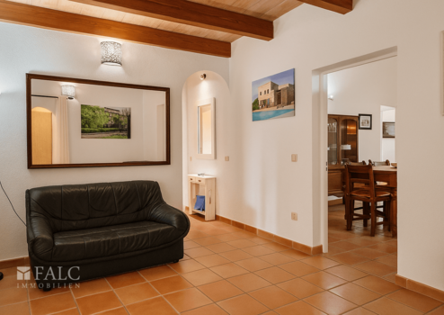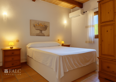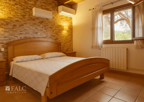Für Wohlfühlklima sorgen Klimaanlagen in allen Räumen und eine Öl-Heizung. Ein Abstell- bzw. Waschraum bietet praktischen Komfort, während die geräumige Garage Platz für 2–3 Autos bietet. Mediterraner Stil, liebevoll gepflegter Garten, Natursteinakzente und ein großer Pool machen diese Finca zu einem echten Traumobjekt.