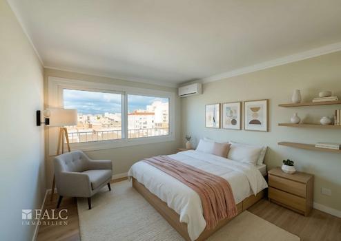 Zum Verkauf steht ein vollständig neu renoviertes 3-Zimmer-Apartment in El Arenal / Ses Cadenes, einem der beliebtesten Abschnitte der Playa de Palma. Die Wohnung liegt in der dritten Linie zum Meer und überzeugt durch ihre moderne Ausstattung, helle Räume, circa 80 m² Wohnfläche sowie eine großzügige Terrasse, von der Sie einen schönen Blick auf die Dächer von Arenal, das Meer und die umliegenden Berge genießen.