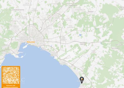 Für Freizeit und Sport sorgen der Plaça dels Nins Park, ideal für Spaziergänge und Picknicks, sowie das Iron Gym Arenal, nur rund 165 Meter entfernt. Die Anbindung an den öffentlichen Nahverkehr ist ausgezeichnet: Eine Bushaltestelle in ca. 180 Metern Entfernung bietet direkte Verbindungen ins Zentrum von Palma, während die Autobahn schnell erreichbar ist. Auch der Flughafen Palma de Mallorca liegt nur ca. 8 Kilometer entfernt, was die Lage besonders attraktiv für internationale Reisende macht.