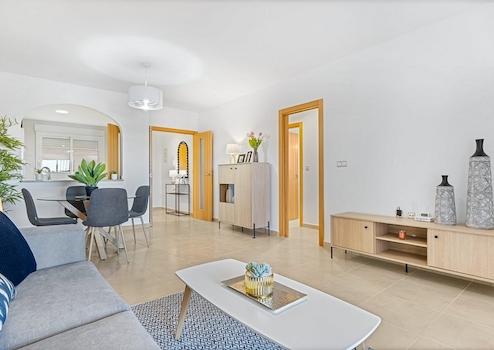 Dieses exklusive Apartment bietet zwei Schlafzimmer mit Einbauschränken, zwei Badezimmer, eine großzügige Terrasse, einen Gemeinschaftspool und die Möglichkeit eines Tiefgaragenstellplatzes. Die Immobilie befindet sich in Lomas de Cabo Roig, einer der begehrtesten Gegenden an der Orihuela Costa, und verbindet ruhiges Wohnen mit bester Infrastruktur in der Umgebung.