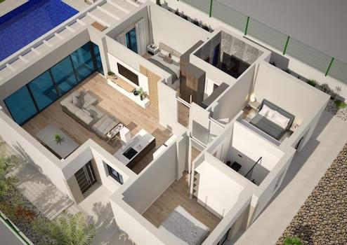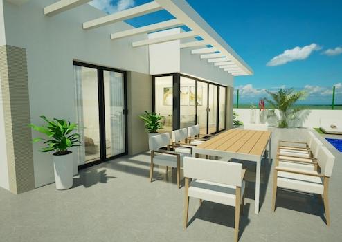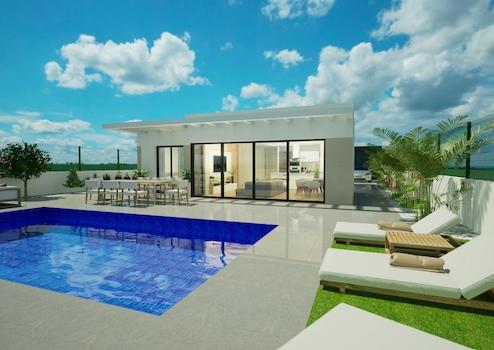 Die Villen stehen auf großzügigen Grundstücken von jeweils 400 m², wobei die modernen Wohnflächen 100 m² umfassen. Der Bauträger bietet die Möglichkeit, Ihr Zuhause individuell zu gestalten und mit einer Reihe von Upgrades auszustatten, darunter ein privater Pool, Poolbar, Solarium, automatisches Tor und ein liebevoll angelegter Garten.