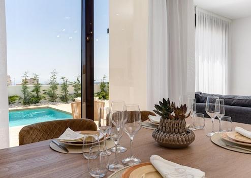 Diese modernen Villen bieten drei Schlafzimmer, zwei Badezimmer, einen privaten Swimmingpool und einen Parkplatz auf dem eigenen Grundstück. Salisol Hills ist ein einzigartiges Projekt freistehender Villen, das die Ruhe der Natur mit den majestätischen Bergen verbindet. Jede Villa steht auf einem Grundstück von mindestens 346 m² und verfügt über eine private Dachterrasse mit spektakulärem 360°-Panoramablick auf die Natur, das Meer und die umliegenden Berge.
