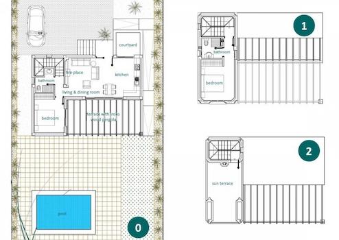 Die mediterranen Häuser befinden sich auf großzügigen Grundstücken, die jeweils über einen privaten Pool, einen vollständig angelegten Garten und einen Parkplatz verfügen.