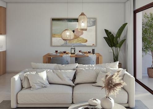 Die Wohnanlage umfasst 23 stilvolle Apartments und 9 elegante Reihenvillen, jeweils mit zwei Schlafzimmern und zwei voll ausgestatteten Bädern. Helle, offene Grundrisse, großzügige Terrassen und teilweise spektakuläre Meerblicke schaffen ein einzigartiges Wohngefühl zwischen Komfort und Leichtigkeit.