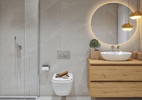 Die Bäder präsentieren sich im modernen Spa-Stil: