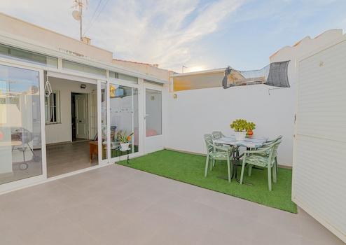 MAYMAR präsentiert dieses gemütliche, renovierte Reihenbungalow, gelegen in der ruhigen Gegend von Torretas III, einer der etabliertesten Wohngegenden von Torrevieja.~~In der Calle Azucena gelegen, genießt diese Immobilie eine privilegierte Lage, umgeben von Einfamilienhäusern, mit einfachem Zugang zu allen Dienstleistungen, Grünflächen und nur wenige Autominuten vom Stadtzentrum und den Stränden entfernt.~~Mit einer bebauten Fläche von 62 m2 auf einem Grundstück von 87 m2 bietet dieses eingeschossige Haus eine komfortable und funktionale Aufteilung. Kürzlich renoviert, ist es sowohl als Hauptwohnsitz als auch als Ferieninvestition ideal.~~Der Wohnbereich umfasst ein helles Wohnzimmer mit direktem Zugang zum vorderen Garten, eine offene Küche und einen Essbereich.~Der Schlafbereich verfügt über zwei gut geschnittene Schlafzimmer und ein voll ausgestattetes Bad.~~Zur Immobilie gehören außerdem eine verglaste Terrasse und ein Vorgarten, ideal, um das angenehme Klima das ganze Jahr über zu genießen. Zudem gibt es einen separaten Waschraum und einen Abstellraum.~~Details wie die aktuelle Renovierung, Privatsphäre und komfortable Außenbereiche machen dieses Objekt zu einer einzigartigen Gelegenheit in der Region.~~Ein vielseitiges Zuhause für alle, die Ruhe, Funktionalität und den mediterranen Lebensstil in Torrevieja suchen.