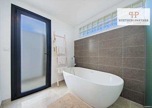 Zu den technischen Highlights gehören ein Wasserenthärter, ein Glasfaseranschluss für schnelles Internet sowie eine hochwertige deutsche Alarmanlage von Telenot, die ein hohes Maß an Sicherheit bietet. Die gesamte Immobilie zeichnet sich durch Fußbodenheizung in allen bewohnten Räumen sowie eine unsichtbar integrierte Klimaanlage mit drei zentralen Fancoils aus, die auf Kalt- und Warmwasserbasis arbeiten und ganzjährig ein ideales Raumklima gewährleisten. Die Wärme- und Kälteversorgung erfolgt über eine Daikin-Wärmepumpe aus dem Jahr 2023 in Kombination mit einem 200-Liter-Warmwasserboiler desselben Jahres, was die Immobilie besonders energieeffizient macht.