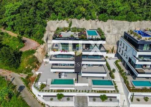OPATIJA, ZENTRUM – Großzügige Wohnung in einem hochwertigen Neubau mit Garage und Panoramablick aufs Meer