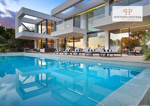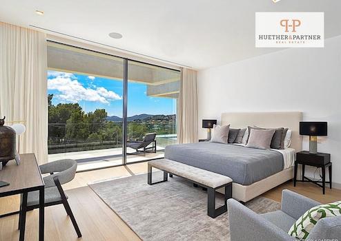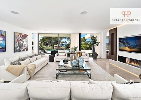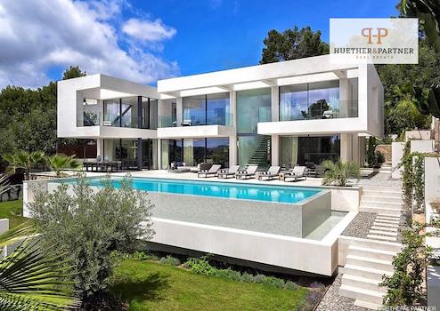 Diese beeindruckende, moderne Luxusvilla befindet sich in einer der begehrtesten Wohngegenden von Portals Nous und überzeugt durch ihre zeitgemäße Architektur, lichtdurchfluteten Räume und hochwertige Ausstattung. Das im Jahr 2017 erbaute Haus präsentiert sich in einem halbneuen Zustand und wurde mit viel Liebe zum Detail gestaltet. Große Panoramafenster schaffen auf allen Etagen ein harmonisches Zusammenspiel zwischen Innen- und Außenbereich und lassen viel Tageslicht in die Wohnräume strömen.