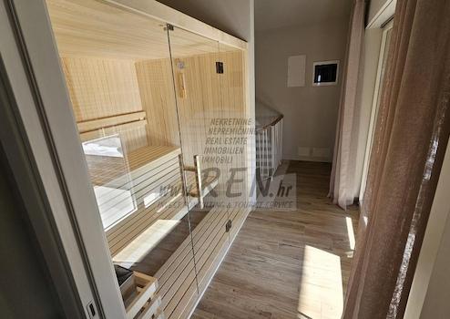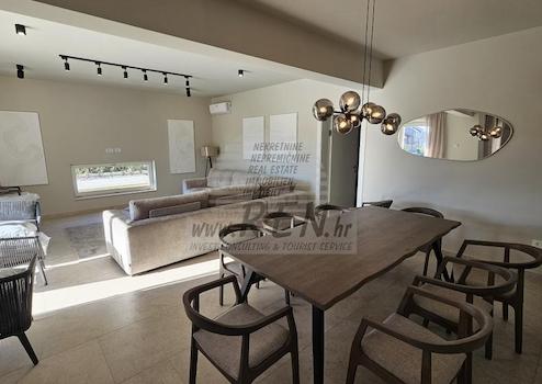 Zum Verkauf steht eine moderne Doppelhaushälfte mit Swimmingpool, gelegen in einer ruhigen Umgebung nahe Novigrad. Die Villa verbindet modernes Design, hohen Wohnkomfort und mediterrane Atmosphäre. Hochwertige Materialien und klare architektonische Linien verleihen der Immobilie eine elegante Ausstrahlung, mit einem herrlichen Meerblick von den oberen Etagen.