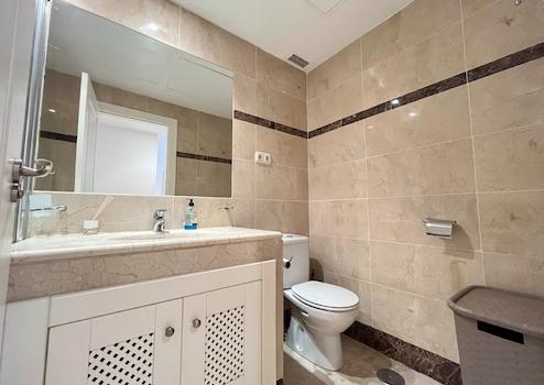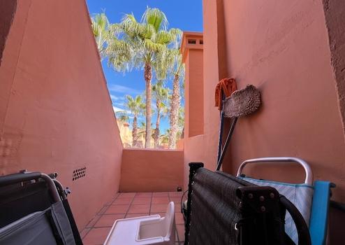 Im Inneren finden Sie ein helles Wohnzimmer mit direktem Zugang zu einer der geräumigen Terrassen, ideal, um die spanische Sonne zu genießen oder im Freien zu speisen. Die moderne Küche ist komplett ausgestattet und praktisch angelegt. Beide Schlafzimmer sind geräumig und verfügen über Einbauschränke, und das Hauptschlafzimmer hat ein eigenes Bad.