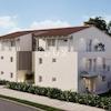 Das 65 m² große Apartment befindet sich im Erdgeschoss der Residenz B. Die durchdachte Raumaufteilung umfasst zwei Schlafzimmer, eines davon mit eigenem Bad. Das geräumige Wohnzimmer mit Küche und Essbereich grenzt an eine überdachte Terrasse mit Gartenmöbeln.