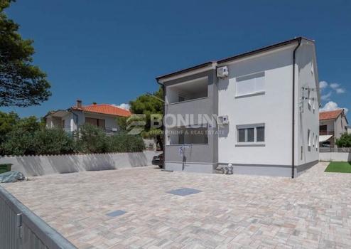 In ruhiger Lage in Vodice steht ein neu erbautes Einfamilienhaus mit einer Wohnfläche von insgesamt 216,89 m² auf einem 512 m² großen Grundstück zum Verkauf. Das Haus besteht aus zwei komplett separaten Wohneinheiten mit jeweils eigenem Eingang, was zwei Familien Privatsphäre und komfortables Wohnen ermöglicht oder die Vermietung an Touristen erlaubt.