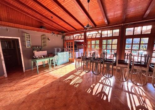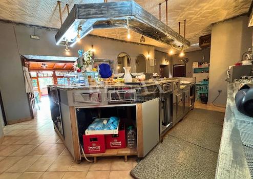 Der Gewerbebereich erstreckt sich über 220 m² und ist vollständig für den Fortbetrieb der Gastronomie ausgestattet. Er umfasst zwei Gasträume, eine Bar, eine professionelle Küche, einen Lagerraum, zwei Sanitäreinheiten sowie eine überdachte Terrasse mit einem Außengrill, die das Angebot zusätzlich bereichert. Das Ambiente strahlt dank der Holzdecken mit Balken und charmanten rustikalen Elementen Wärme aus und schafft das ganze Jahr über eine angenehme Atmosphäre für Gäste.