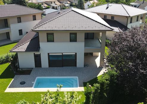 Sofort bezugsfertige, moderne Einfamilienhäuser in Öreghegy – schlüsselfertig, mit angelegtem Privatgarten, Garage, Pool oder Whirlpool!