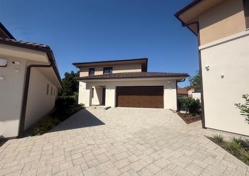 A házak 2025-ben épültek, korszerű tégla falazattal, cseréptetővel, földszint + teljes értékű emelet, nappali+ 4 szoba kialakítással, saját telekrésszel, önálló dupla garázzsal, valamint különböző extra kényelmi funkciókkal – medencével vagy jakuzzival – parkosított saját kerttel rendelkeznek.