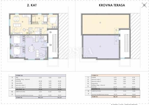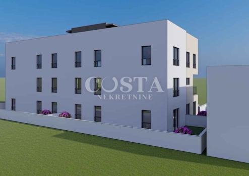 In Bibinje bei Zadar steht eine im Bau befindliche Wohnung zum Verkauf. Die 52,24 m² große Wohnung befindet sich im zweiten Obergeschoss eines Wohngebäudes mit zehn Wohneinheiten. Sie besteht aus Wohnzimmer, Küche mit Essbereich, zwei Schlafzimmern, Badezimmer und Flur. Zur Wohnung gehören außerdem eine 50,27 m² große Dachterrasse und ein Stellplatz im Innenhof. Die Gesamtnutzfläche beträgt somit 105,03 m² (66,07 m² Nutzfläche). Die Wohnung ist klimatisiert und verfügt über Fußbodenheizung. Die PVC-Fenster sind mit elektrischen Jalousien ausgestattet.