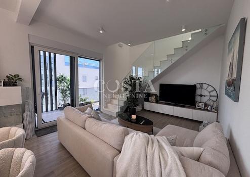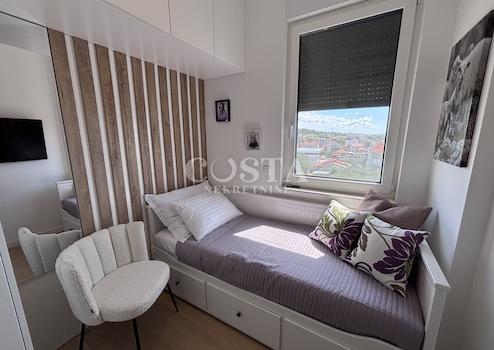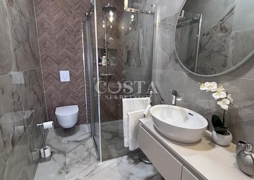 Möbliertes Penthouse in Vidikovac bei Zadar zur Langzeitmiete. Diese luxuriös ausgestattete Wohnung befindet sich im dritten Stock eines Wohnhauses mit Aufzug. Die 118,82 m² große, vollklimatisierte Wohnung mit Fußbodenheizung verfügt über ein Wohnzimmer, eine Wohnküche, zwei Schlafzimmer, zwei Badezimmer, eine Loggia und eine Terrasse.