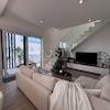 Zur Wohnung gehört außerdem eine großzügige Dachterrasse (112,66 m²) mit Whirlpool, Markise und Sonnendeck. Von der Terrasse genießen Sie einen beeindruckenden Panoramablick auf die Stadt und die Schärenlandschaft. Zwei überdachte Parkplätze stehen ebenfalls zur Wohnung zur Verfügung. Die Gesamtnutzfläche inklusive aller Nebenkosten beträgt 153,95 m².