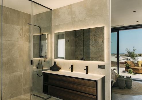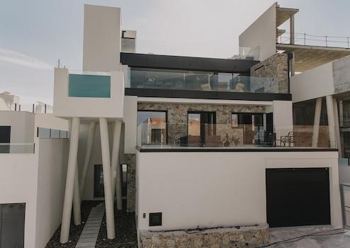 Die Villa gehört zu einem von zwei exklusiven Haustypen, die hier gebaut werden, und beeindruckt mit einem Design, das auf die spektakulären Ausblicke auf Guardamar und das Meer ausgelegt ist. Die drei Schlafzimmer mit eigenem Bad verfügen über private Terrassen mit herrlichem Blick auf die Sierra del Recorral. Der Infinity-Pool ermöglicht es Ihnen, die Schönheit der Umgebung in vollen Zügen zu genießen und gleichzeitig in absoluter Privatsphäre zu entspannen.