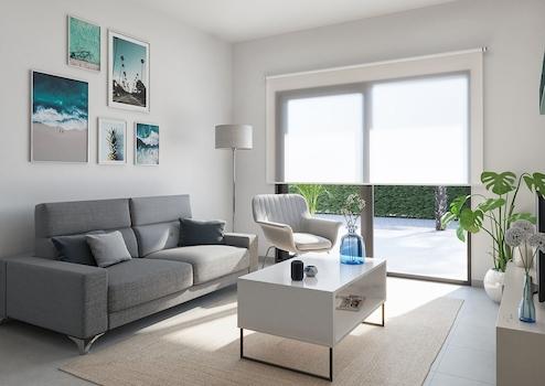 Die hochwertige Ausstattung dieser Häuser beinhaltet unter anderem Bodenbelag aus erstklassigem Steinzeug in der gesamten Immobilie, Fenster- und Türrahmen außen aus grauem PVC, Aluminiumrollläden in ähnlicher Farbe wie die Fenster- und Türrahmen, Doppelverglasung mit Zwischenluftschicht, Einbauschränke mit Schiebetüren, gepanzerte Wohnungstüren mit Türspion und Sicherheitsschloss, Sicherheitsgitter an Fenstern im Erdgeschoss, Einbauküchen mit mit Ober- und Unterschränken, Dunstabzugshaube, Einzelspülbecken mit Abtropffläche, Arbeitsplatte aus Granit sowie Anschluss für Geschirrspüler sowie Vorinstallation für Klimaanlage (Kalt-/Warmluft) über Split-Systeme.