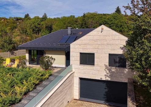 Das Haus ist aus intelligenten Ziegeln errichtet und verfügt über eine 20 cm dicke Graphitdämmung sowie ein mit Steinwolle gedämmtes Dach. Dank seiner Südwestausrichtung bietet es den ganzen Tag über optimale Lichtverhältnisse.