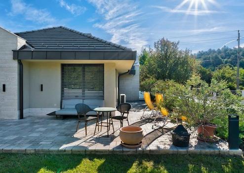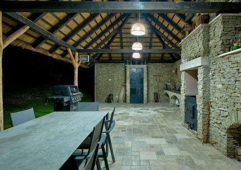 Im Garten befinden sich ein Nebengebäude, eine voll ausgestattete Gartenküche mit Sitzecke, ein Wasserkocher, ein Räucherofen für Wurst und Schinken sowie ein Grill. Das Anwesen eignet sich daher perfekt für größere Feiern und Familienfeste.