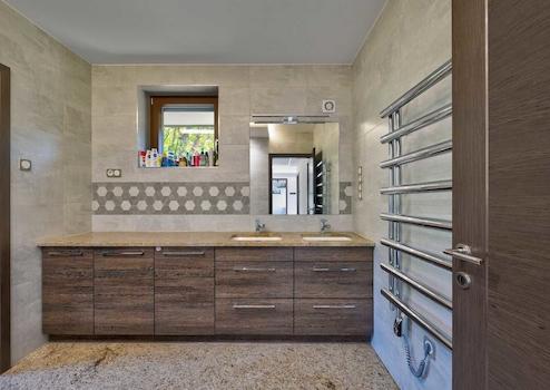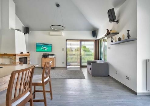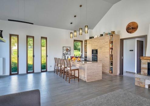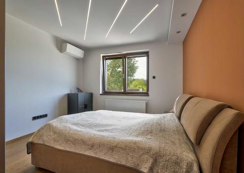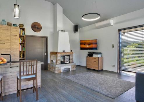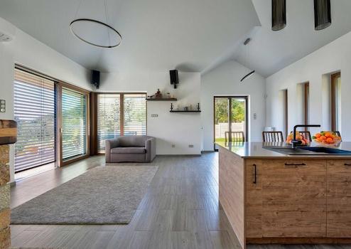 Das Haus ist mit einem Smart-Home-System, einer Videoüberwachungsanlage, einer Wasserenthärtungsanlage, elektrischen Jalousien und Rollläden sowie einer Solaranlage, einer Wärmepumpe und einem Pelletkessel mit Fußbodenheizung ausgestattet. Dadurch ist es nicht nur komfortabel, sondern auch energieeffizient und nachhaltig.