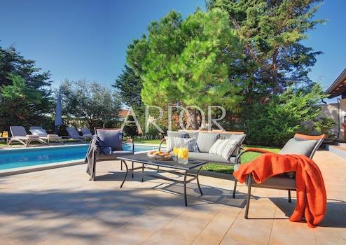 Diese luxuriös eingerichtete Villa bietet 350 m² Wohnfläche und befindet sich auf einem 1200 m² großen Grundstück mit privatem Swimmingpool. Sie ist vollständig ausgestattet und hochwertig möbliert, was höchsten Wohnkomfort garantiert.