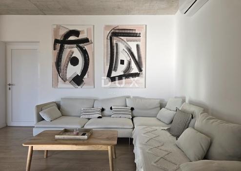 Das Haus fügt sich architektonisch harmonisch in die Umgebung ein und schafft eine gelungene Verbindung von Natur und modernem Design. Es handelt sich um eine Wohneinheit, deren Fläche sich über ein elegant möbliertes und bestens ausgestattetes Geschoss erstreckt.