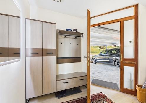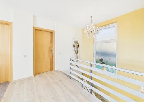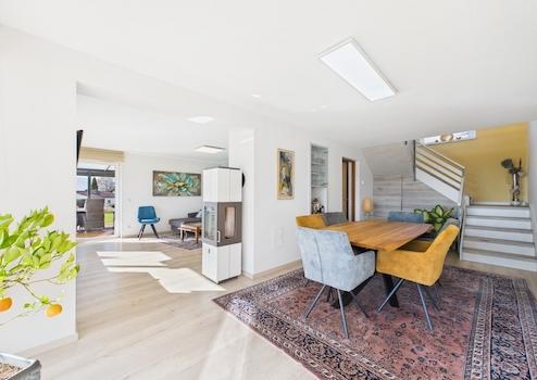 Das Wohnhaus selbst bietet über 190 m² Wohnfläche und überzeugt durch eine großzügige Raumgestaltung, die modernes Wohnen mit funktionaler Eleganz verbindet. In den Obergeschossbereichen zeigen sich die Schlafzimmer mit eigenem Balkon- oder Terrassenzugang – ein Privileg, das jeden Morgen mit Natur, Licht und Aussicht beginnt. Das neu sanierte Badezimmer wurde ebenso mit viel Gefühl für Raumqualität und zeitlose Materialien ausgeführt, ergänzt durch eine installierte Klimaanlage, die speziell im Sommer ein angenehmes Raumklima schafft.