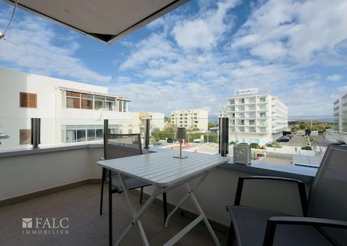 Nur wenige Meter vom Mittelmeer entfernt bietet dieses moderne Apartment in Can Pastilla, eine Wohnlage, die sofort Urlaubsgefühl und maritimes Flair aufkommen lässt. Das Gebäude befindet sich in erster Meereslinie, während die Wohnung selbst nach hinten ausgerichtet ist und dadurch einen seitlichen Meerblick bietet. Ein besonderes Highlight ist die großzügige Gemeinschaftsdachterrasse, von der aus sich ein beeindruckendes Panorama über die Bucht eröffnet – bei klarer Sicht sogar bis nach Palma.