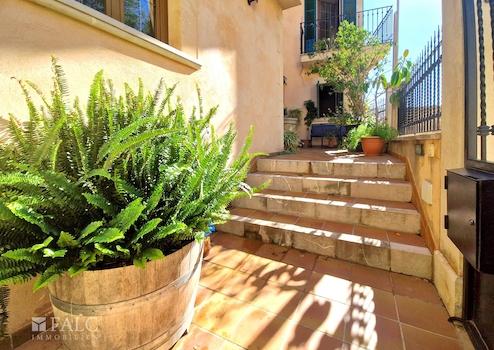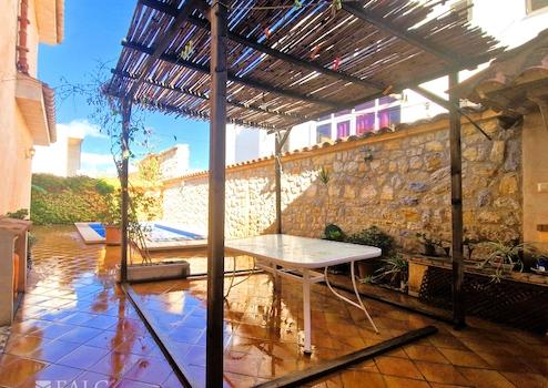 Der Patio bietet sowohl sonnige als auch schattige Zonen – ideal für mediterrane Sommerabende.